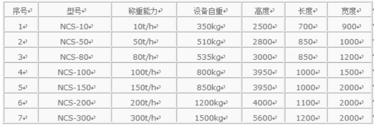 中間計(jì)量秤SW-NCS技術(shù)參數(shù):